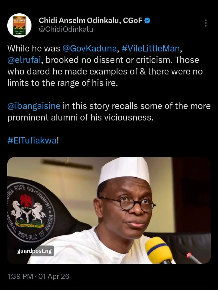 However, in his reaction, Odinkalu took a different stance. He argued that during El-Rufai’s time as governor of Kaduna State, he was known for his harsh response to criticism and was often intolerant of dissenting opinions. According to the human rights lawyer, individuals who opposed or criticized the former governor frequently faced backlash.