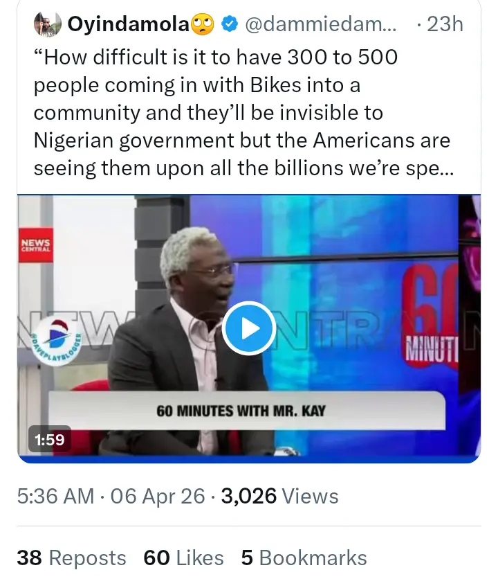 In the video that surfaced online, the presidential aide stated that Nigeria can not acquire the kind of drone system that the government of the United State of America uses to eliminate bandits.