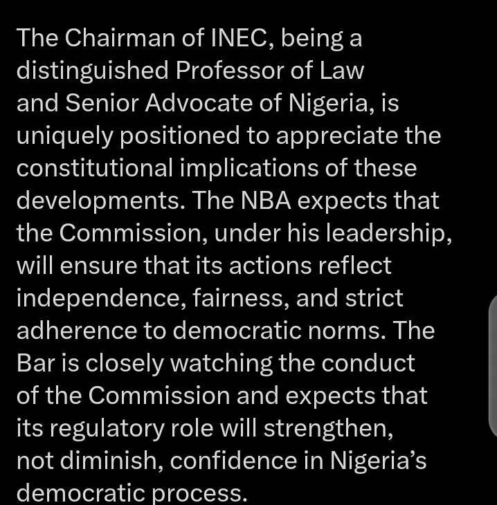 “The NBA expects that the commission, under his leadership, will ensure that its actions reflect independence, fairness and strict adherence to democratic norms”……See More