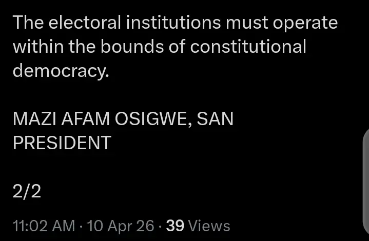 Social media users have taken to their official X account on Friday, April 10, 2026 to react to the statement that the President of the Nigerian Bar Association, NBA, Afam Osigwe made about the Chairman of the Independent National Electoral Commission, INEC, Prof Joash Ojo Amupitan.