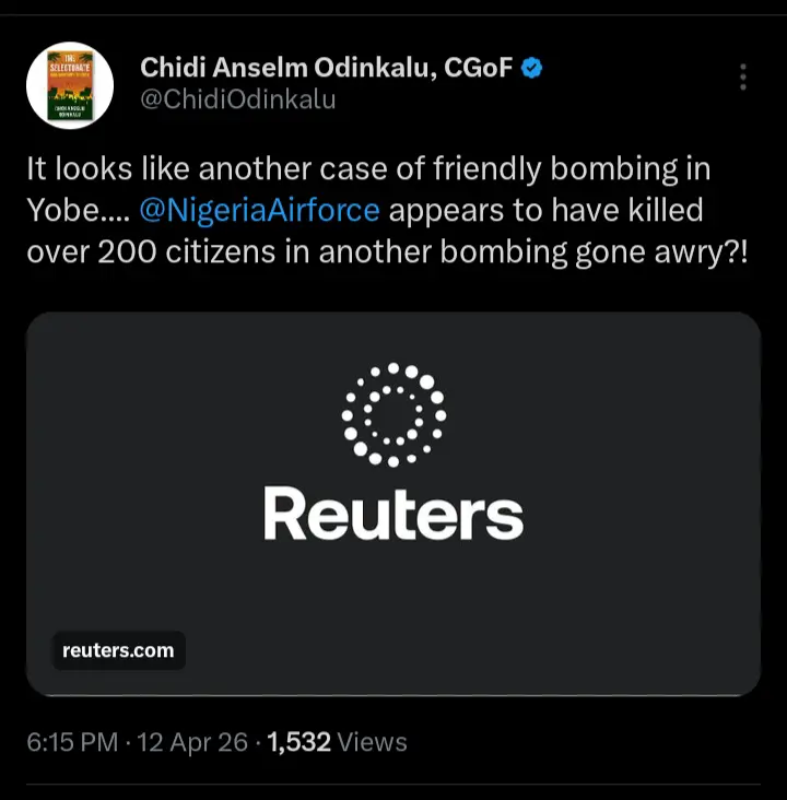 The news regarding the brutal attack on a popular market in Yobe State by the Nigerian Air Force which led to the death of over two hundred persons generated mixed reactions after the reports went viral across various social media platforms.