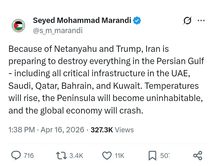 Marandi warned that such actions could lead to severe environmental consequences, including extreme heat conditions that might render parts of the Gulf region uninhabitable. He further cautioned that the destruction of vital oil and gas infrastructure could trigger a global economic collapse, given the region’s central role in international energy supply……See More