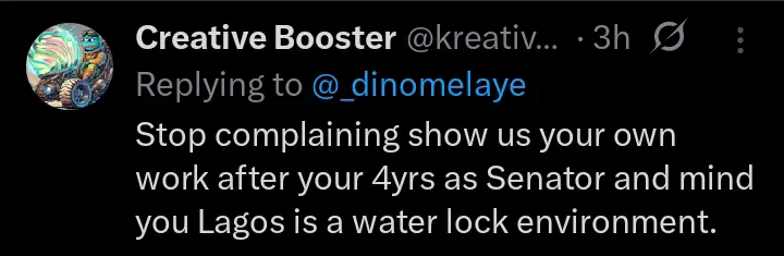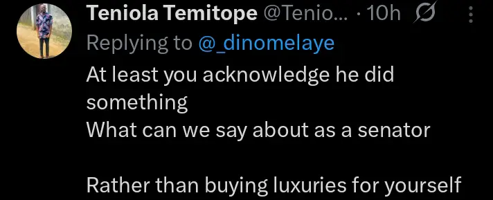 This tweet from Senator Dino Melaye, has attracted reactions from Nigerians and social media users, as some have said he should stop complaining and he should show them what he did as Senator during his tenure, while some have said it is a work still in progress……See More